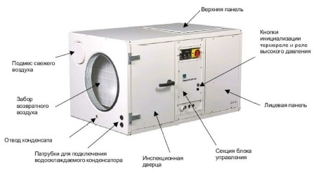 С помощью вентиляторов влажный воздух поступает в устройство Dantherm CDP 125 . При прохождении через испаритель воздух охлаждается до температуры ниже точки росы, а содержащаяся в нем влага конденсируется и дренируется. Осушенный воздух далее проходит через конденсатор, где он подогревается. Температура воздуха при этом на выходе увлажнителя приблизительно на 5 ОС выше температуры воздуха на входе. Благодаря многократному прохождению воздуха через осушитель уровень влажности в помещении снижается, обеспечивая быстрое осушение. Таким образом, абсолютная и относительная влажность воздуха в помещении постепенно снижаются. На выходе влажность воздуха составляет 45-65%. В устройстве Dantherm CDP 125 есть патрубок, через который поступает свежий уличный воздух для подмеса, чтобы обеспечить воздухообмен по санитарным нормам.